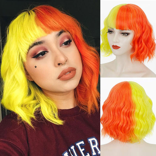 MONIXI Synthetic Blue Wig Short Wavy Wig