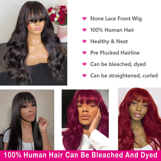 perruques de cheveux humains avec frange
