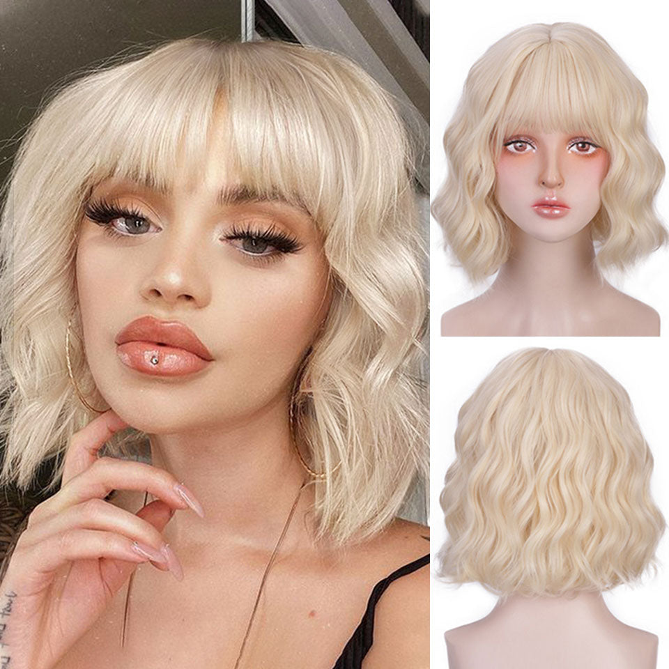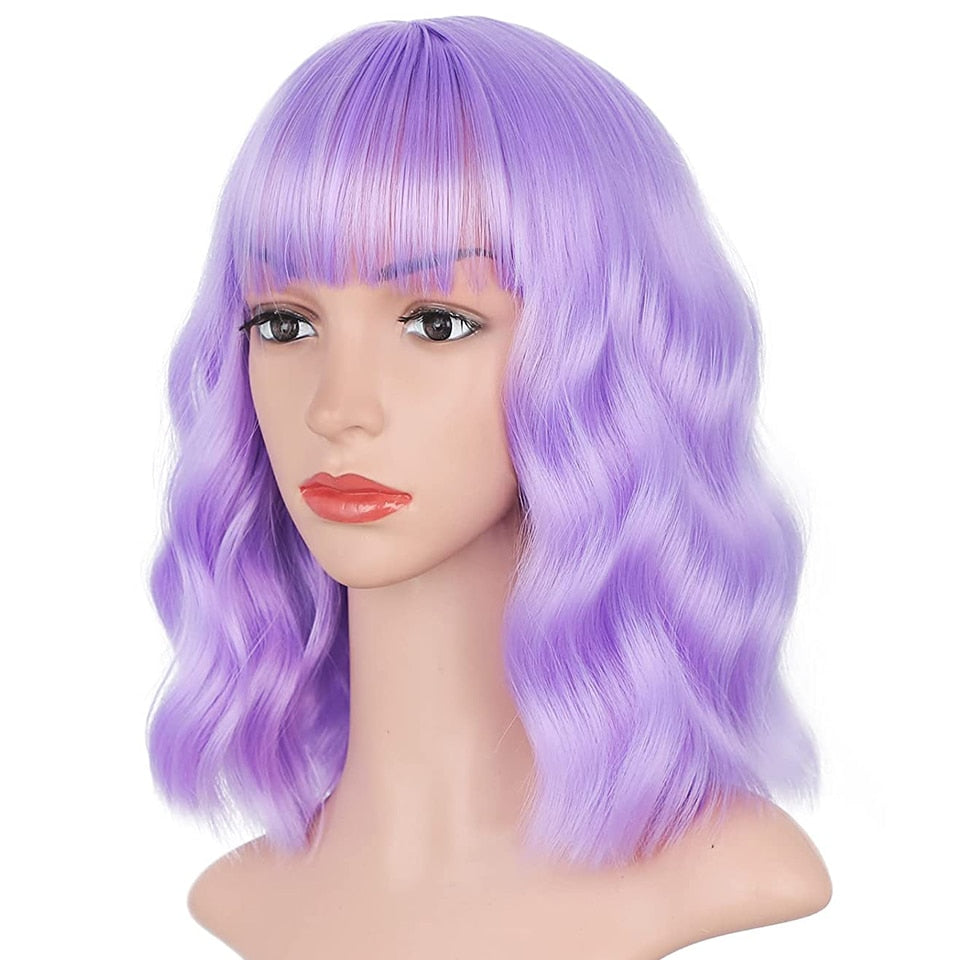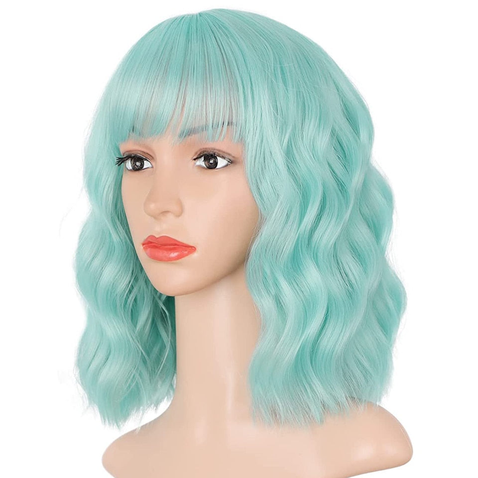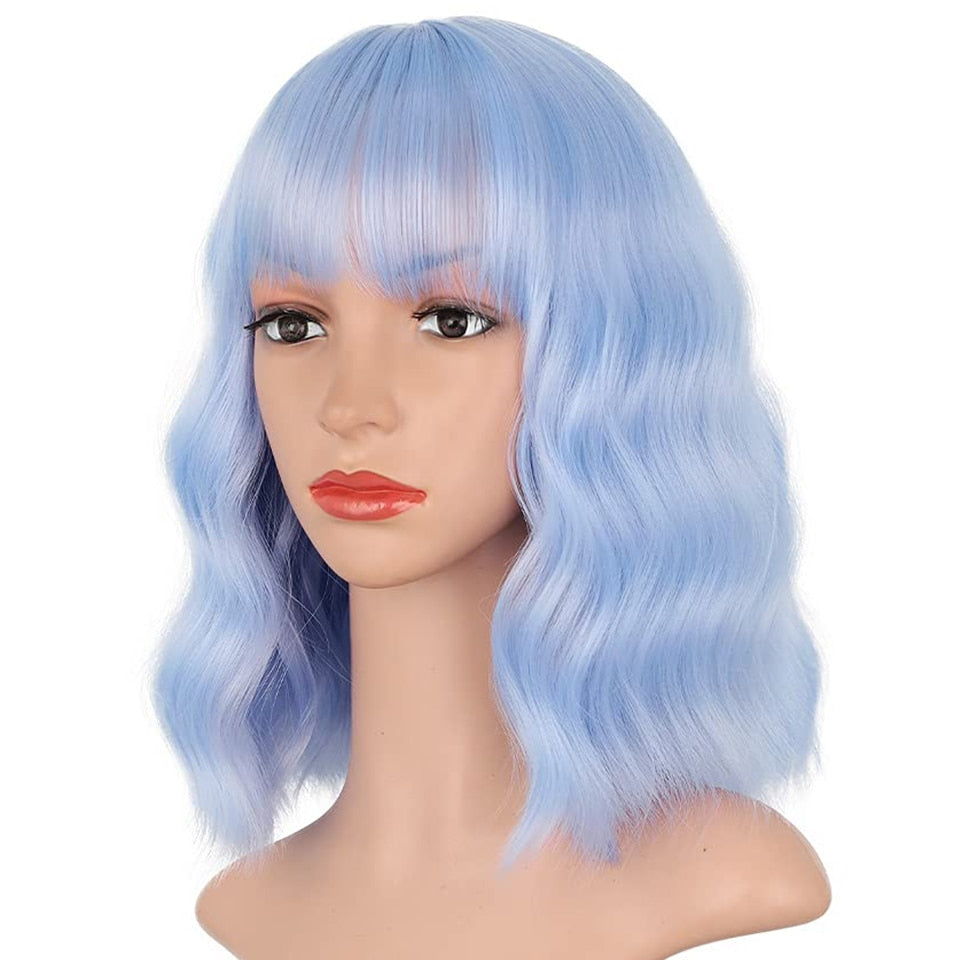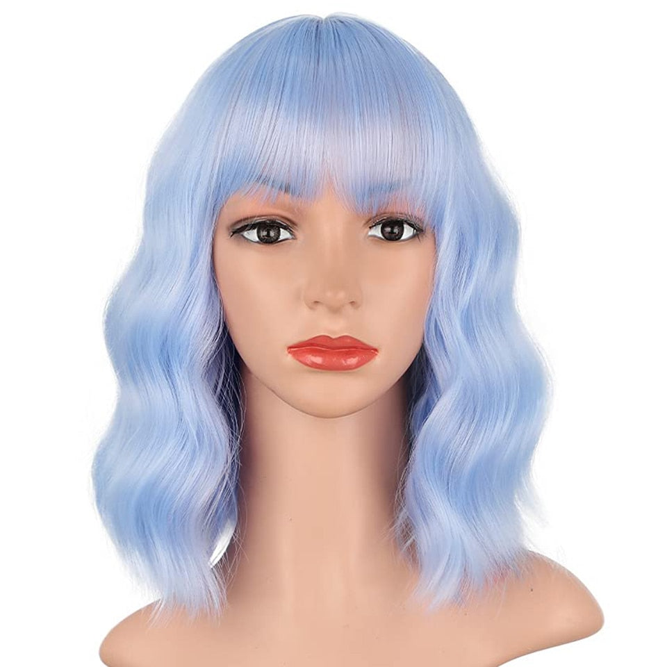 MONIXI Perruque Synthétique Bleue Perruque Courte Ondulée