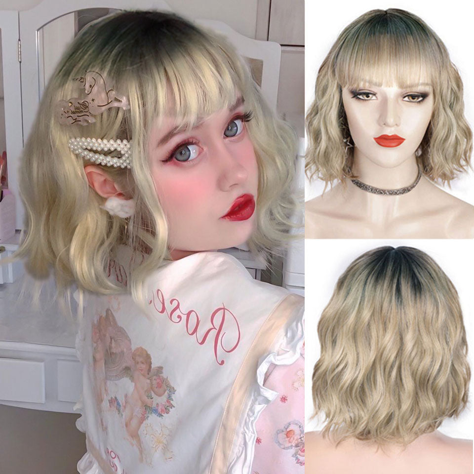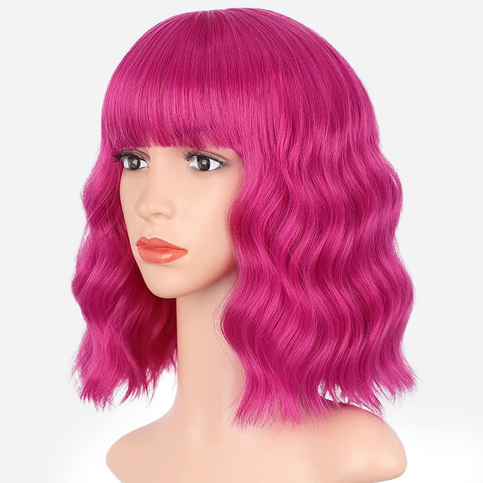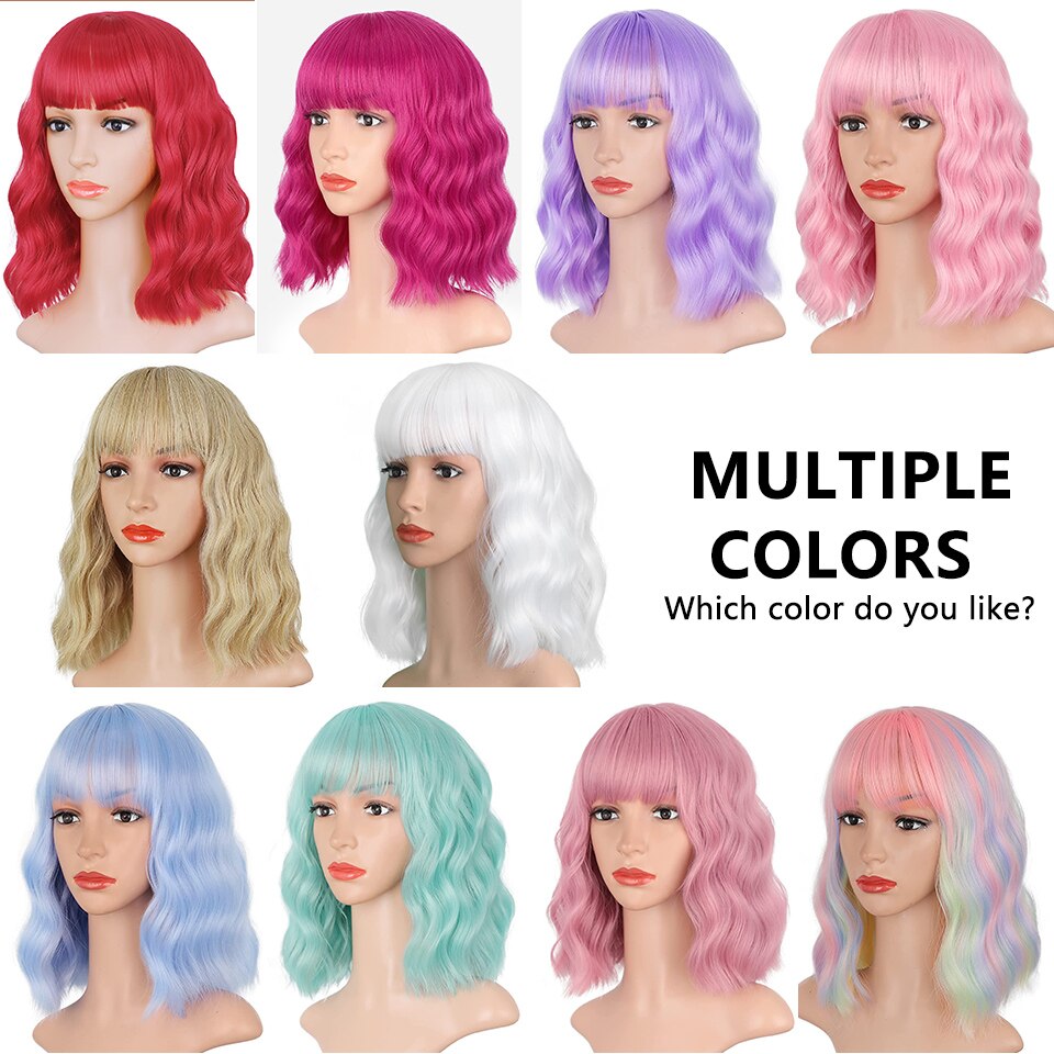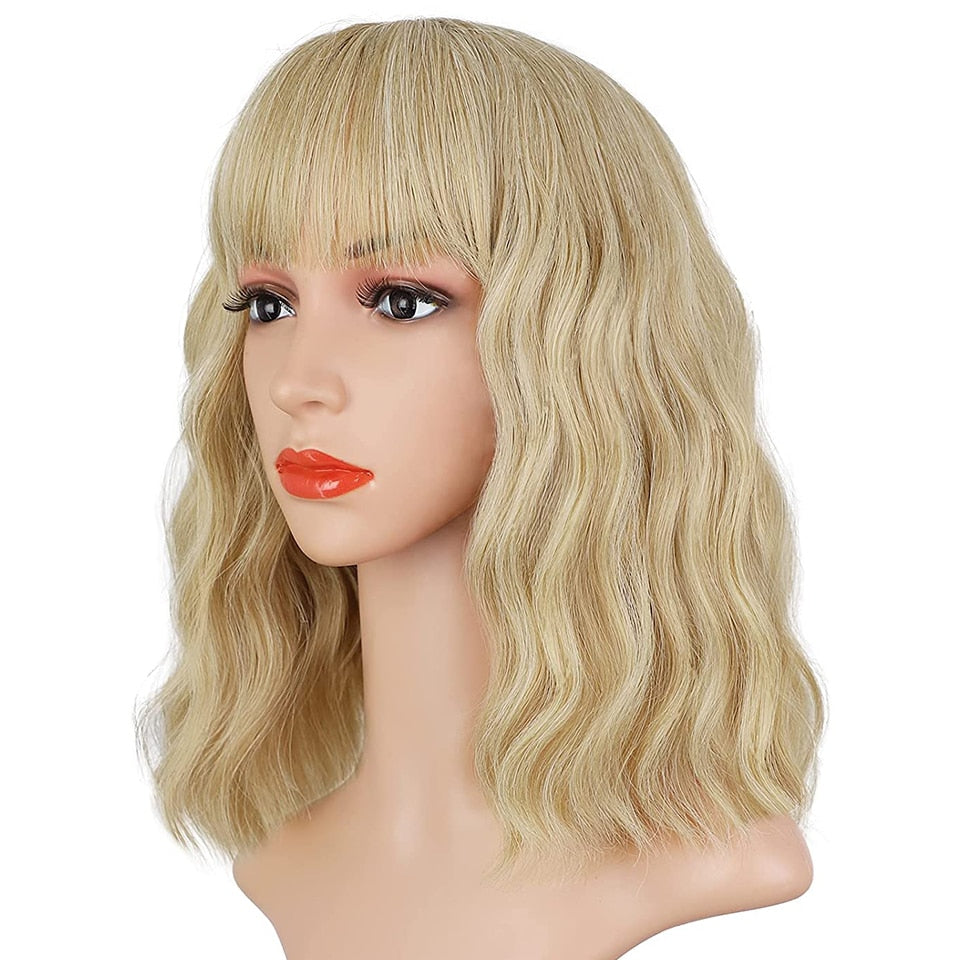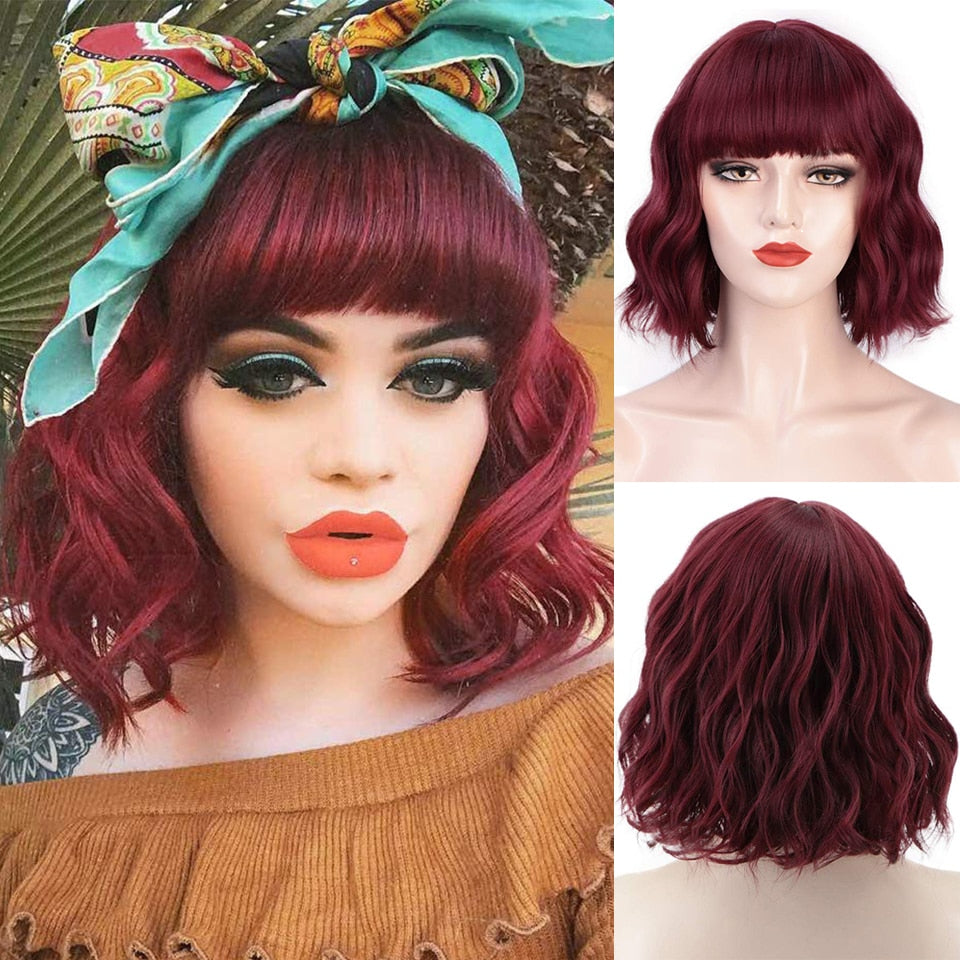MONIXI Perruque Synthétique Bleue Perruque Courte Ondulée