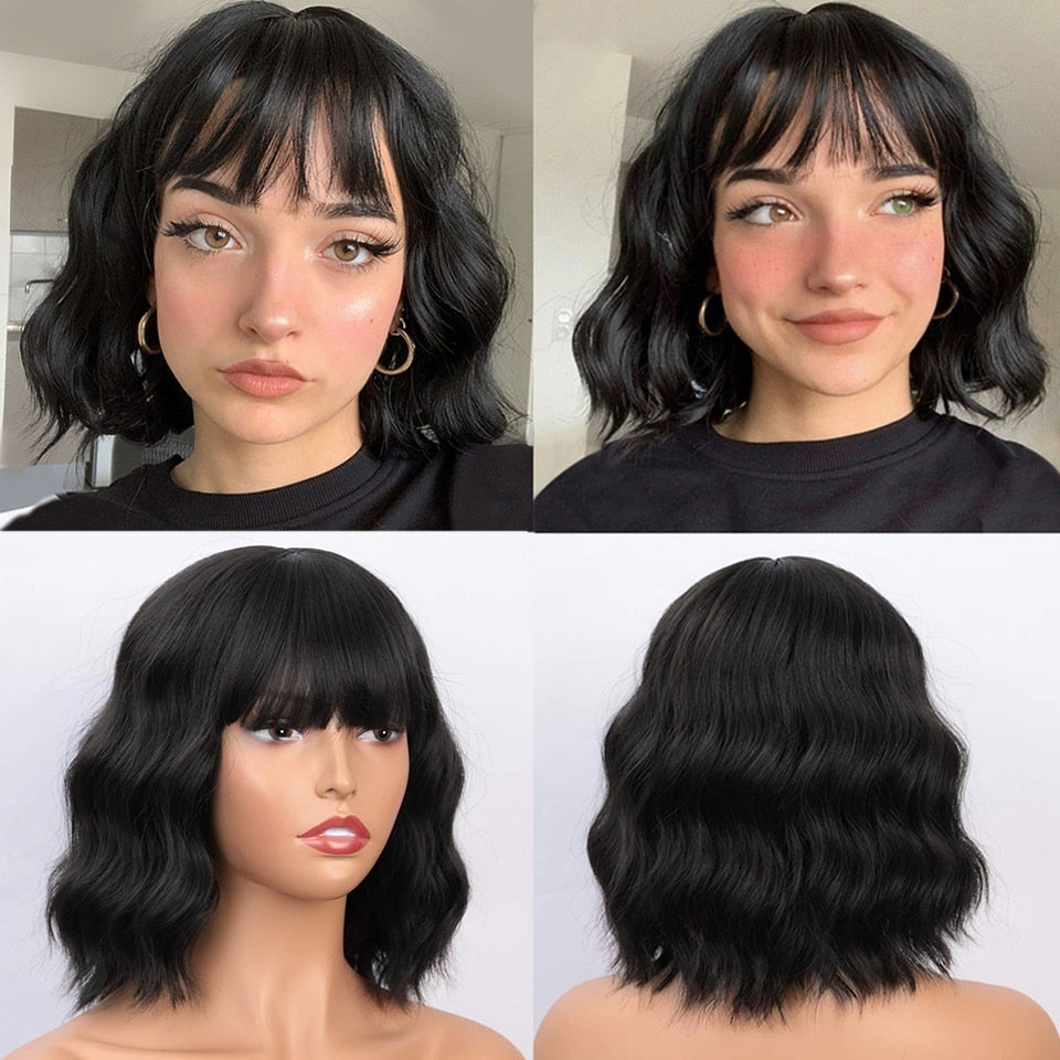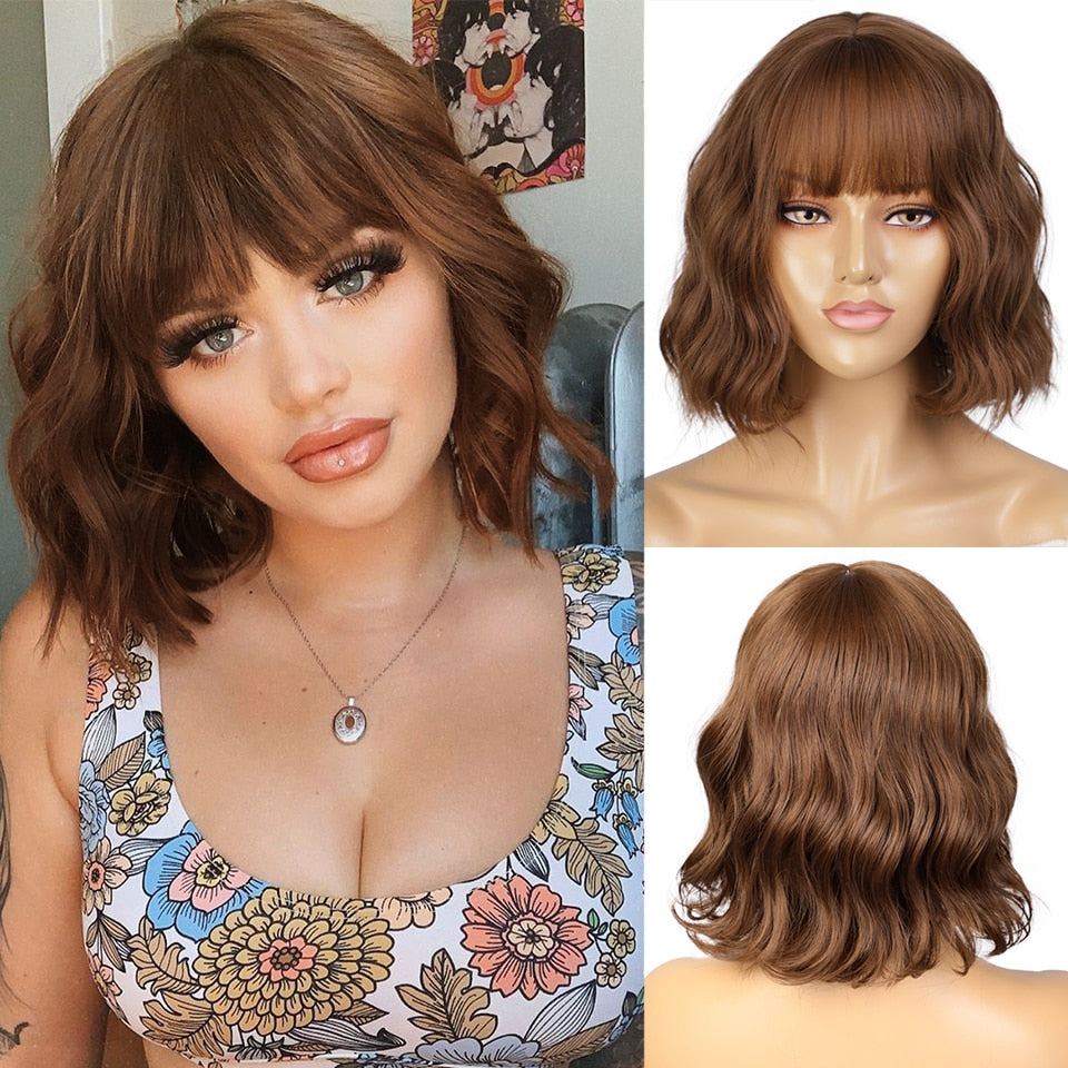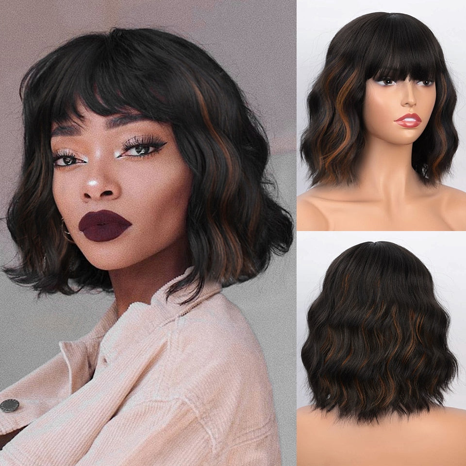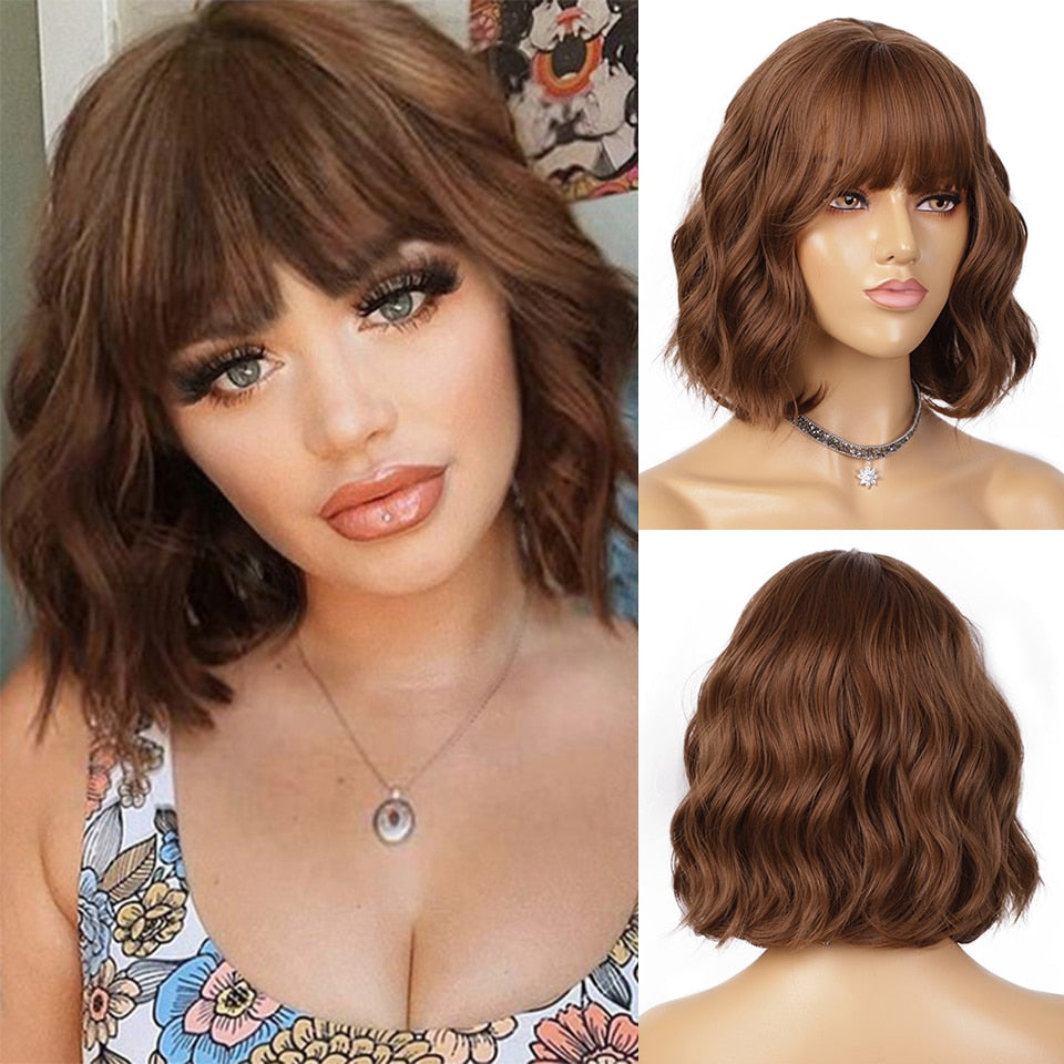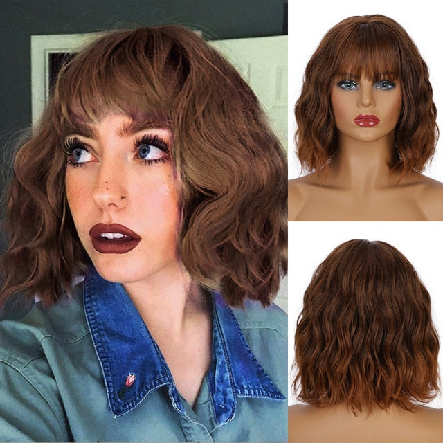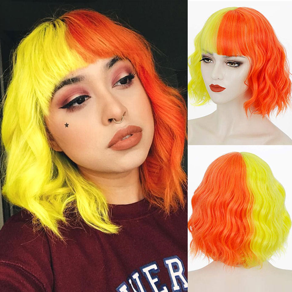 MONIXI Perruque Synthétique Bleue Perruque Courte Ondulée